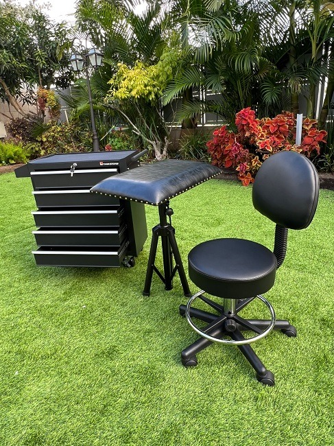 חדר מקעקעים : כיסא הדראולי למטפל משענת יד ועגלת עבודה מברזל
